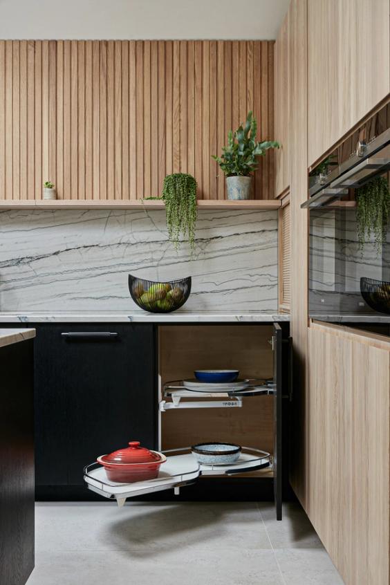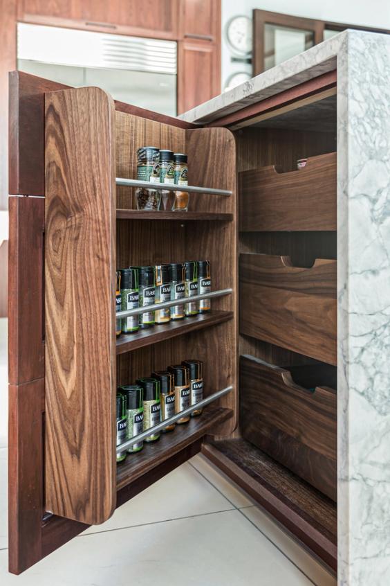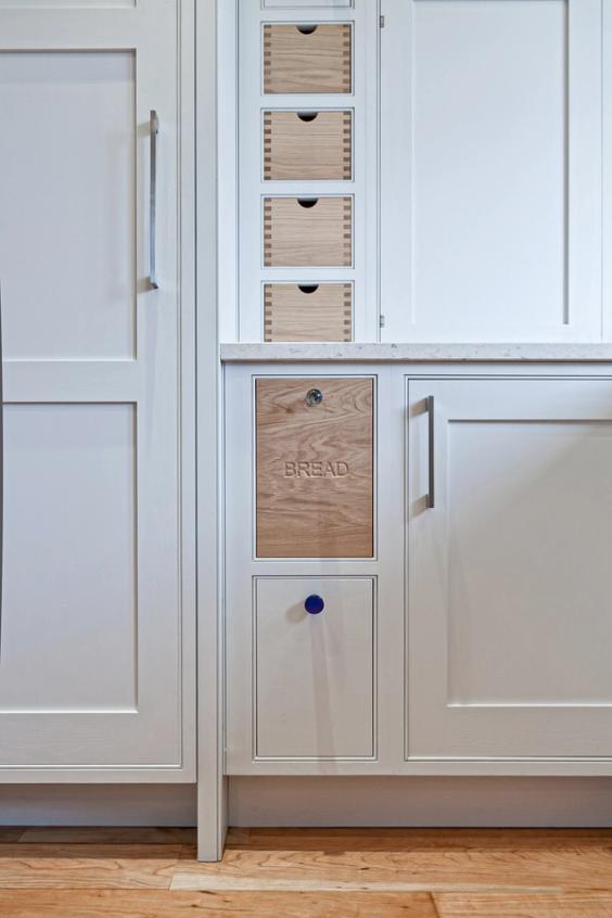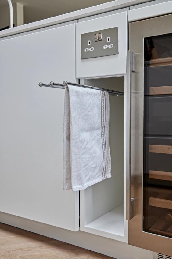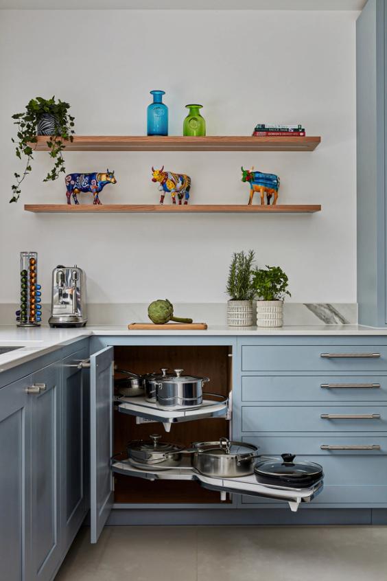 We can also offer advice and expertise on other clever storage solutions to help you make the most of your new kitchen. Ask our designers about brilliant bespoke ways to incorporate items such as swing-out corner shelving, pull-out waste and recycling bin systems, breadbins and loose ingredients stores, drinks trays and chopping boards, drinks bars and racks for bottles and glassware, towel rails, bookshelves, and kitchen stepladders. Last but not least, how about beds and feeding stations for your four-legged friends?