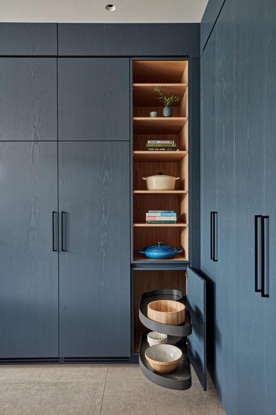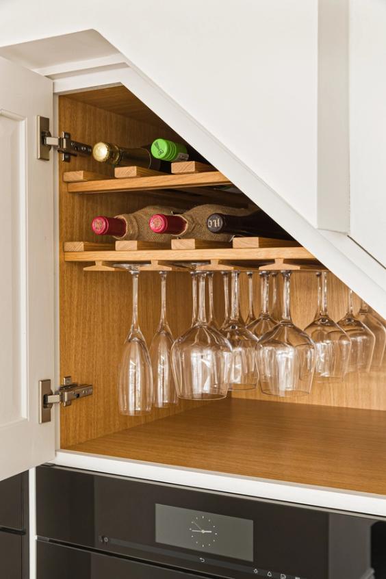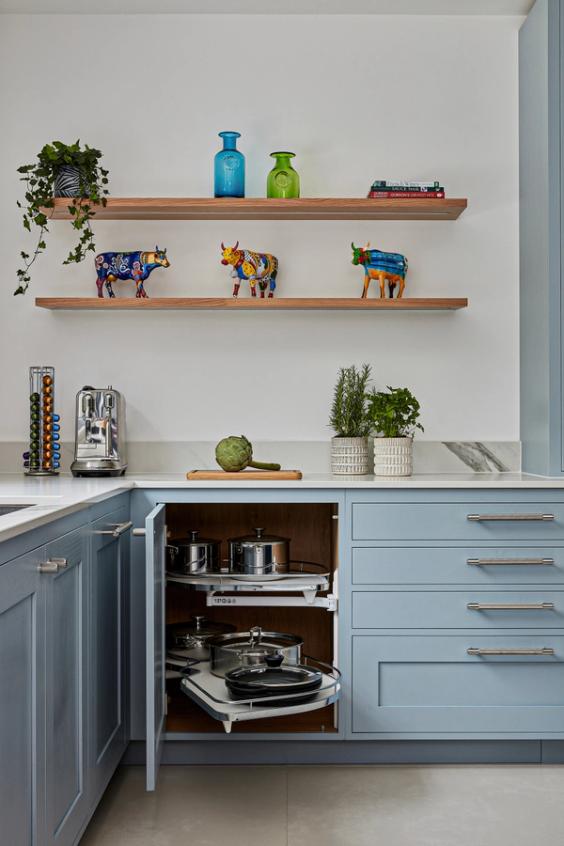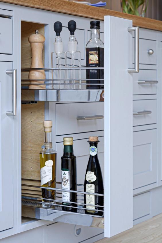 We can also offer advice and expertise on other clever storage solutions to help you make the most of your new kitchen. Ask our designers about brilliant bespoke ways to incorporate items such as swing-out corner shelving, pull-out waste and recycling bin systems, breadbins and loose ingredients stores, drinks trays and chopping boards, drinks bars and racks for bottles and glassware, towel rails, bookshelves, and kitchen stepladders. Last but not least, how about beds and feeding stations for your four-legged friends?