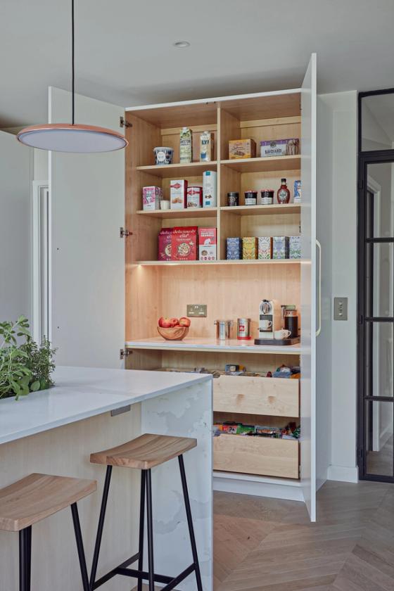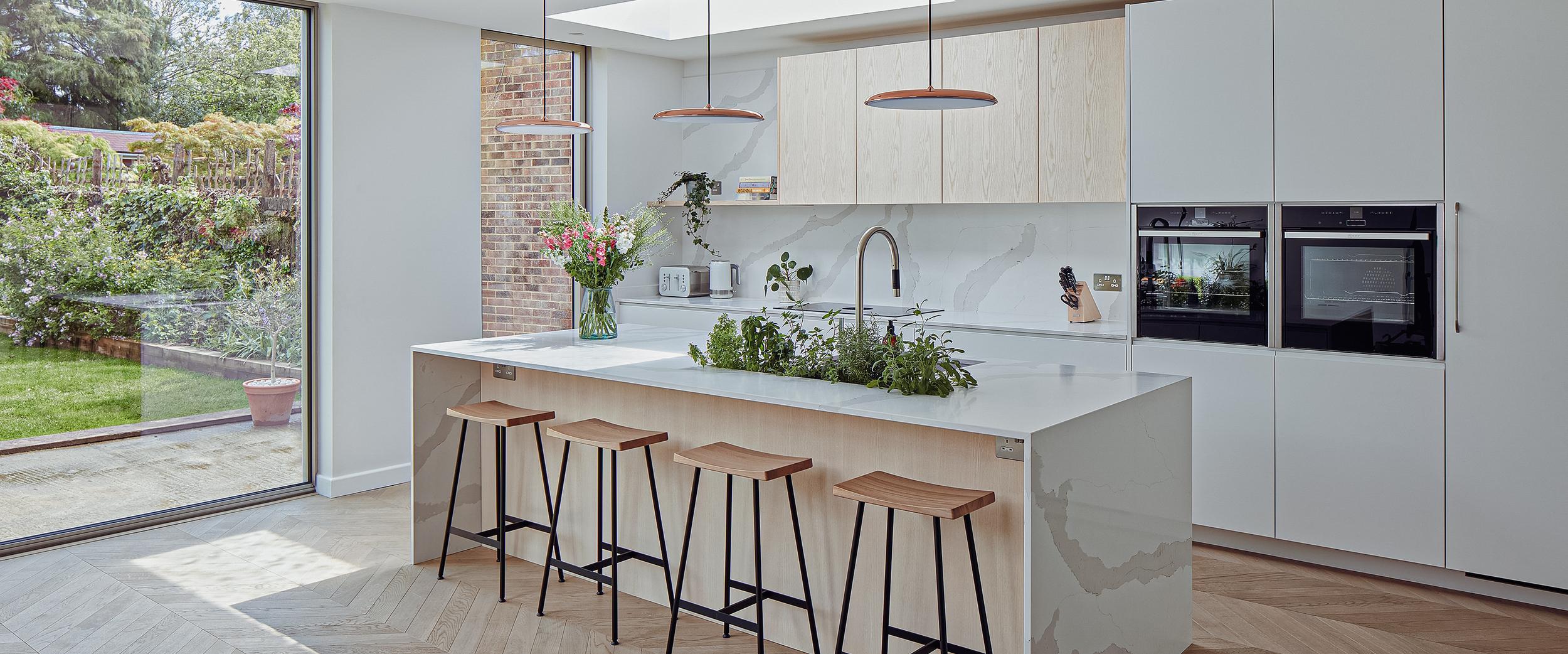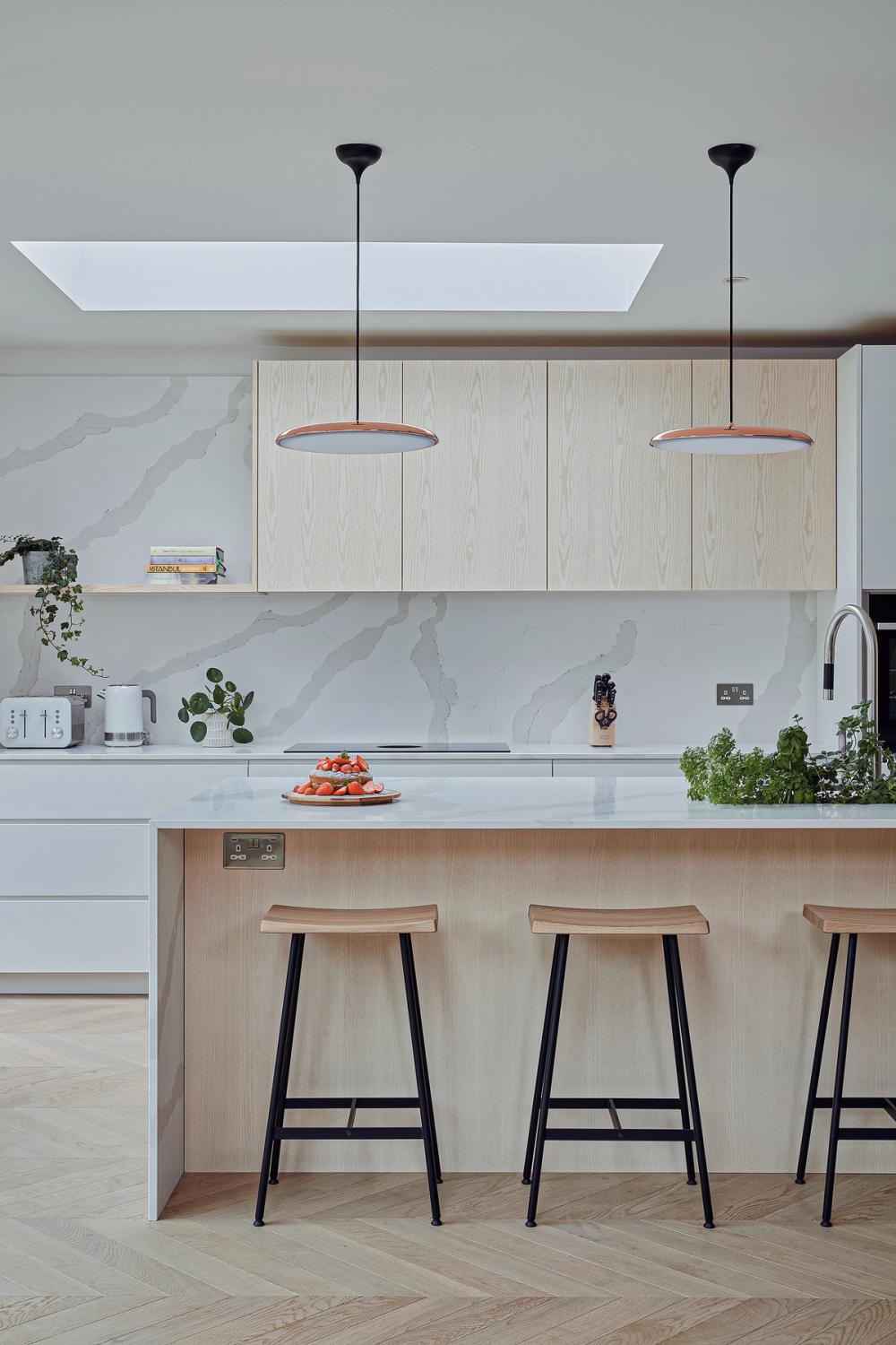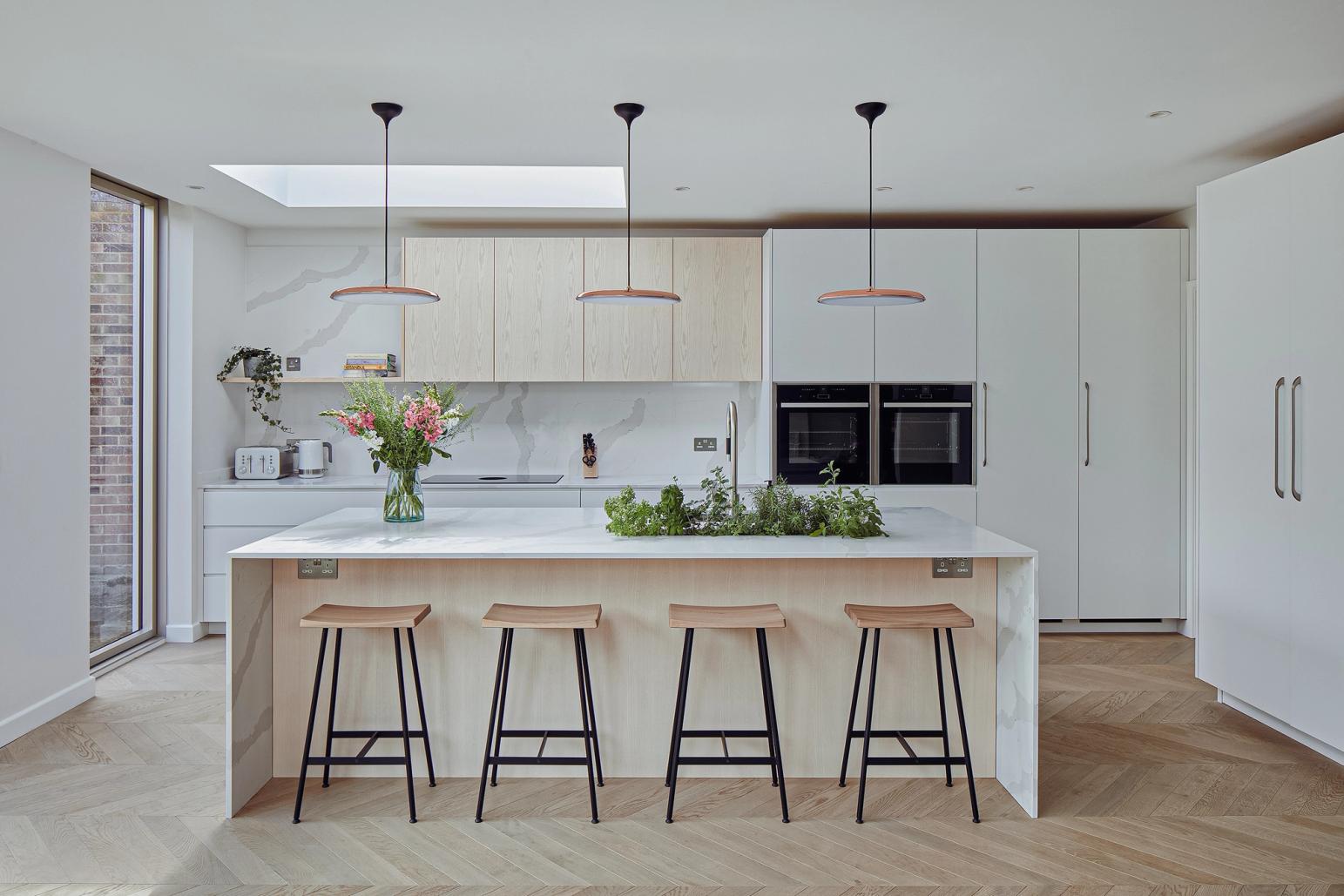 With two young children in the house, the kitchen in this London home is always frantically busy so a hyper-efficient work triangle, and fresh-looking, durable surfaces are all essential requirements.