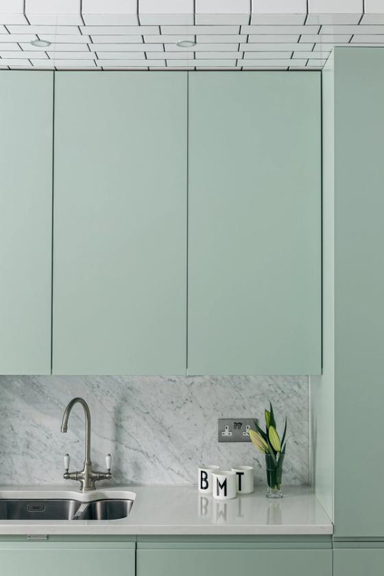 The owners of this kitchen within a new block of flats in London wanted a design that would use the compact space intelligently and complement the decorative scheme their interior designer had devised for them.