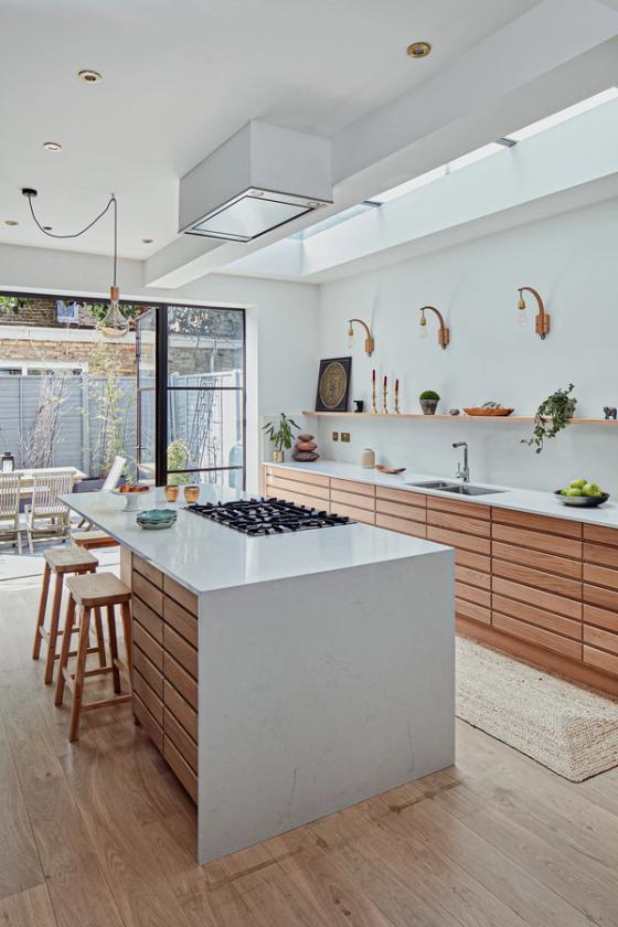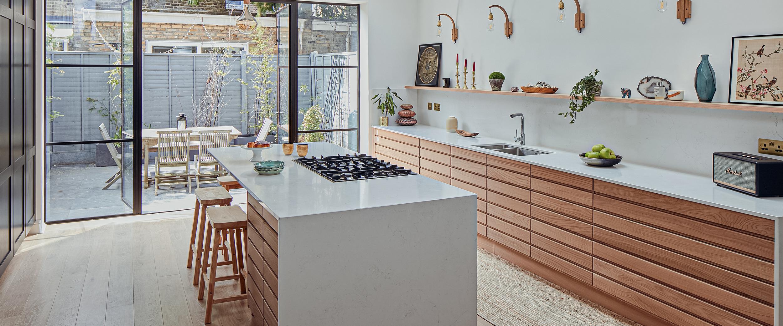 With their children now in their teens and their lifestyle changing accordingly, a young French couple wanted a new look for the kitchen at the back of their Victorian terraced home in central London.