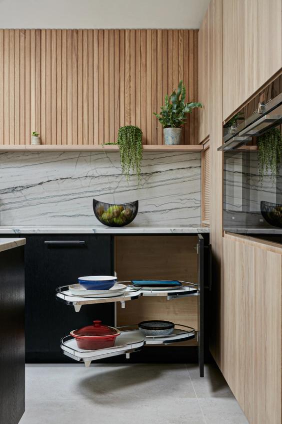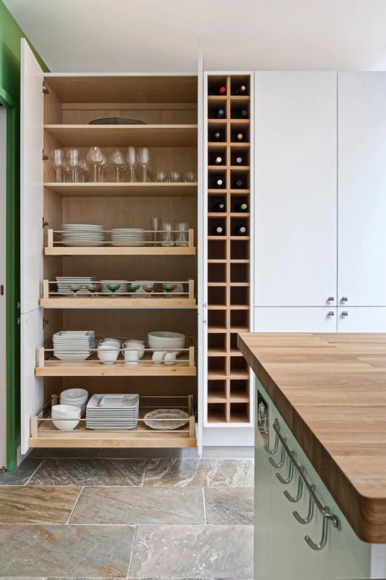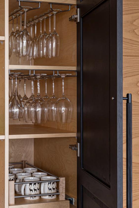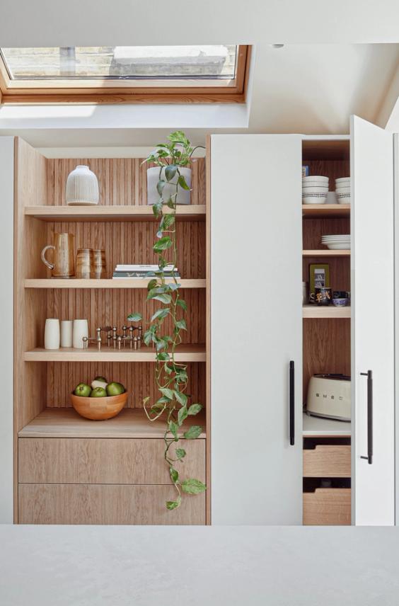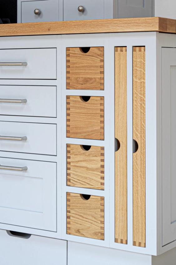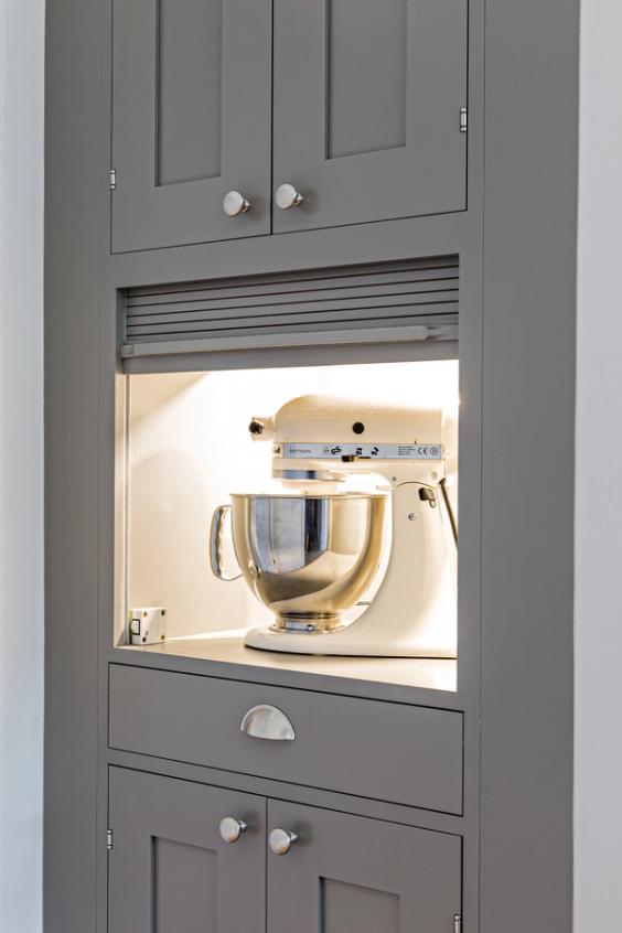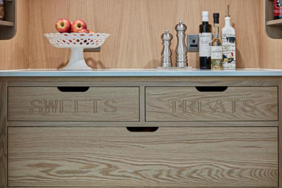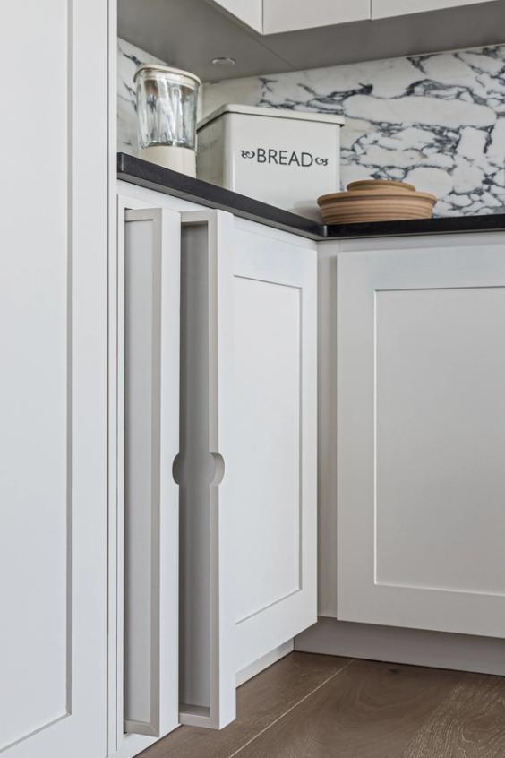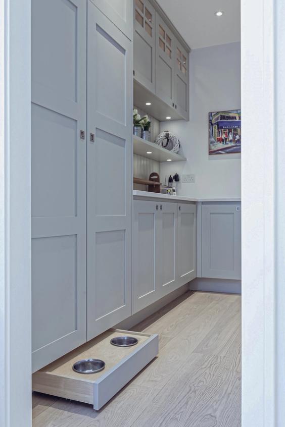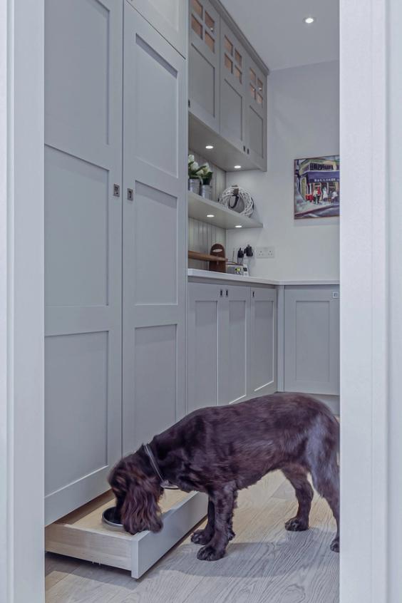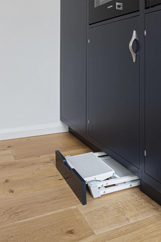 We can also offer advice and expertise on other clever storage solutions to help you make the most of your new kitchen. Ask our designers about brilliant bespoke ways to incorporate items such as swing-out corner shelving, pull-out waste and recycling bin systems, breadbins and loose ingredients stores, drinks trays and chopping boards, drinks bars and racks for bottles and glassware, towel rails, bookshelves, and kitchen stepladders. Last but not least, how about beds and feeding stations for your four-legged friends?