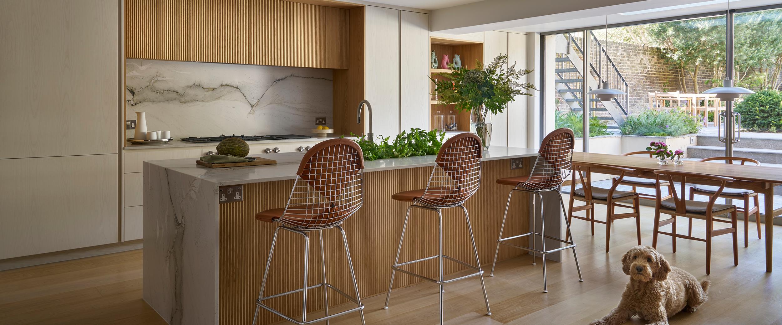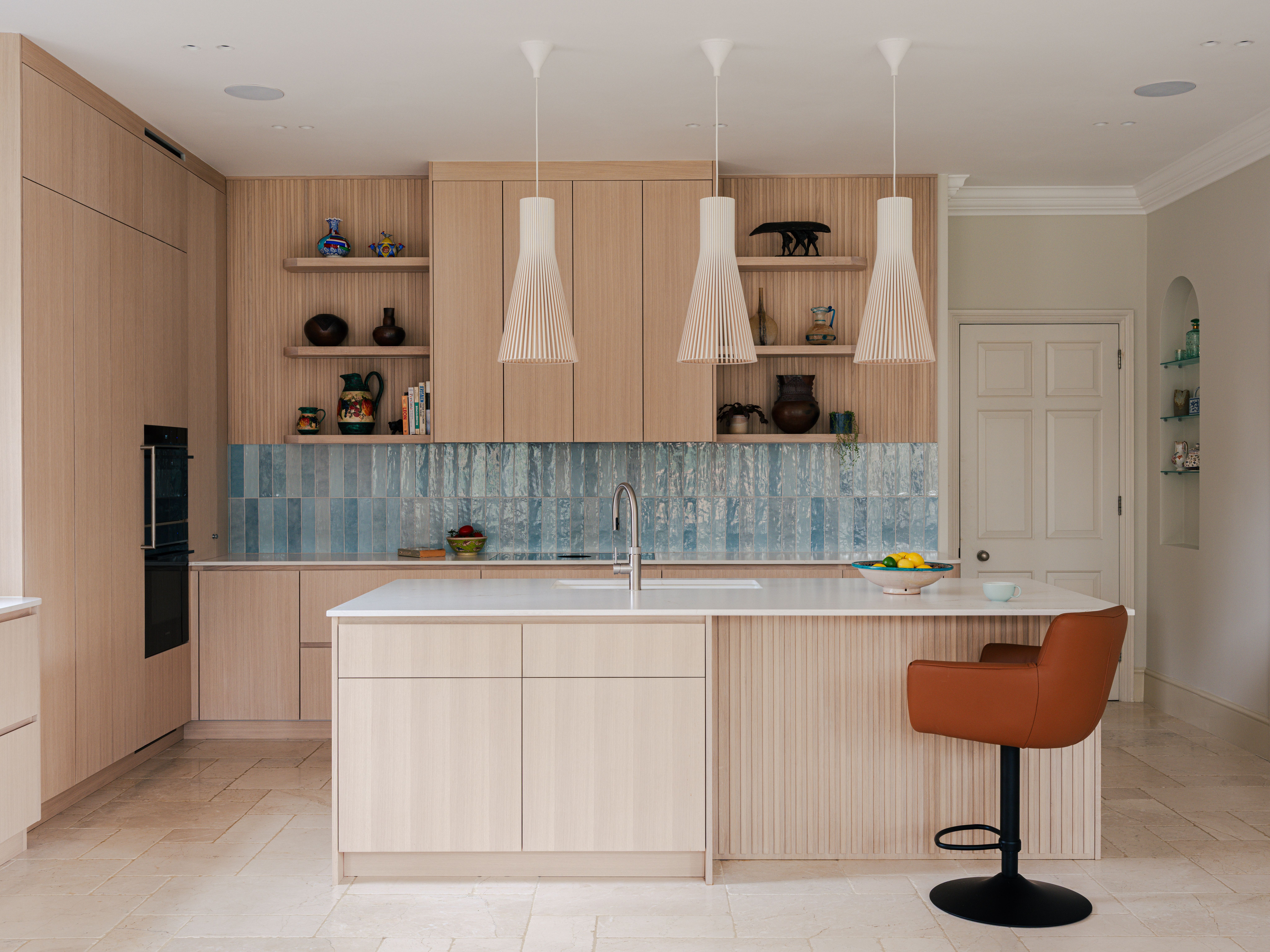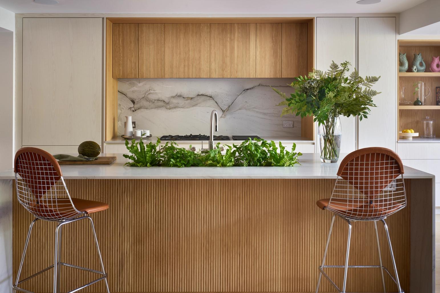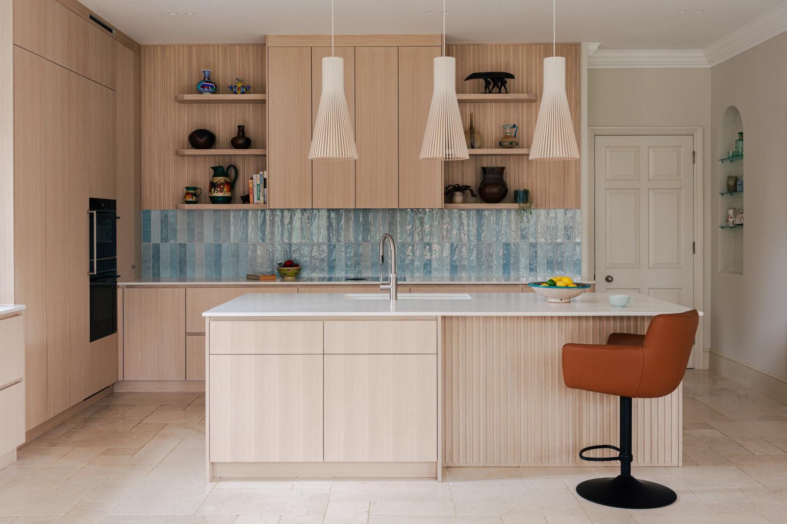 Texture is taking centre stage in 2026. Fluted or slatted wooden doors continue to grow in popularity, offering a dynamic alternative to flat-front cabinetry. Whether running vertically or horizontally, these reeded surfaces bring depth, rhythm, and architectural interest to the kitchen — working particularly well on islands or tall feature units. Often used in our Skog and Hygge styles, this detail pairs beautifully with natural finishes and minimalist lines.