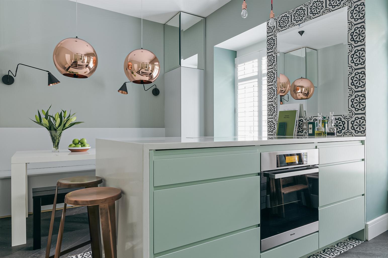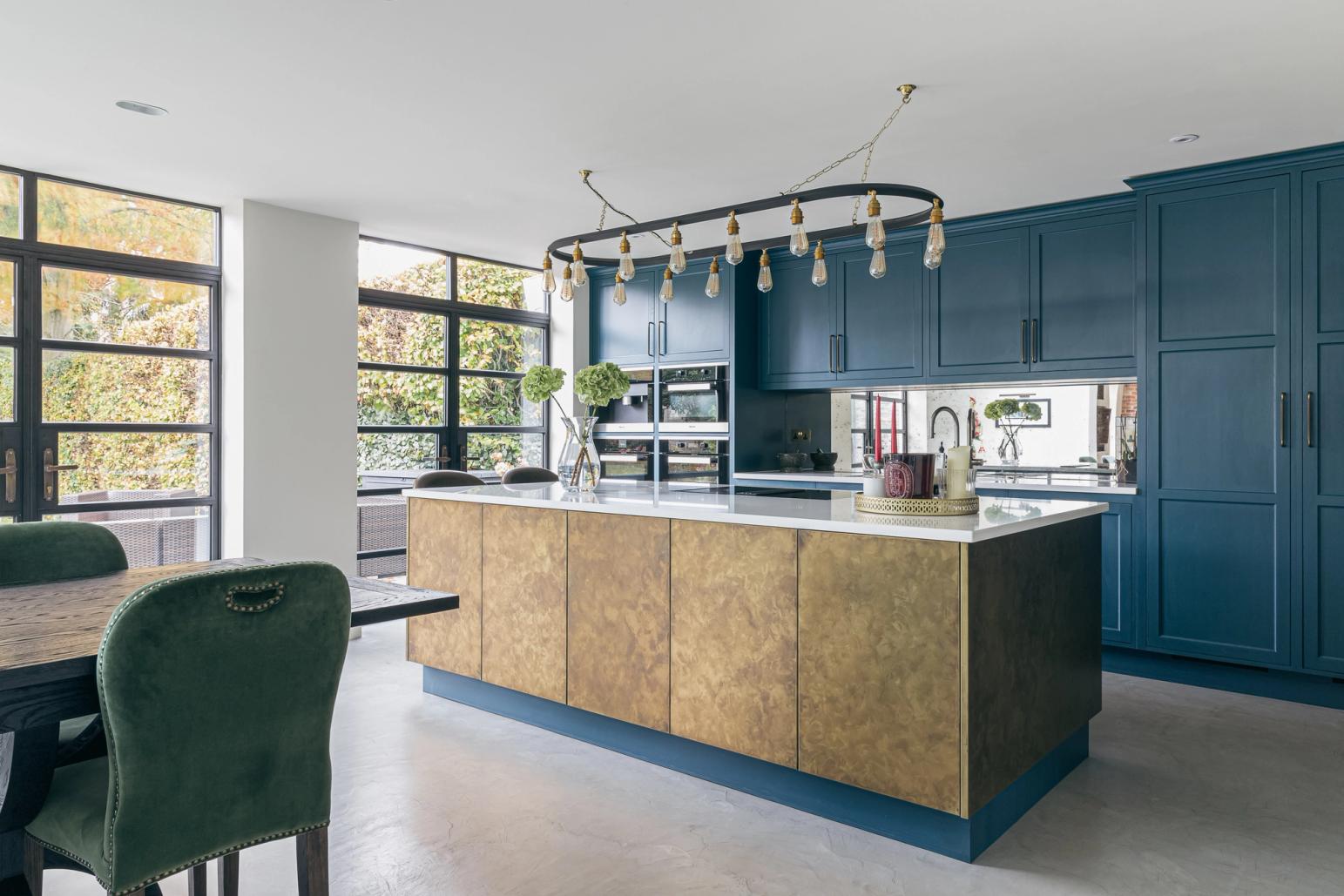 How about a glamourous kitchen? This kitchen features a bespoke antique mirror-effect splashback.
