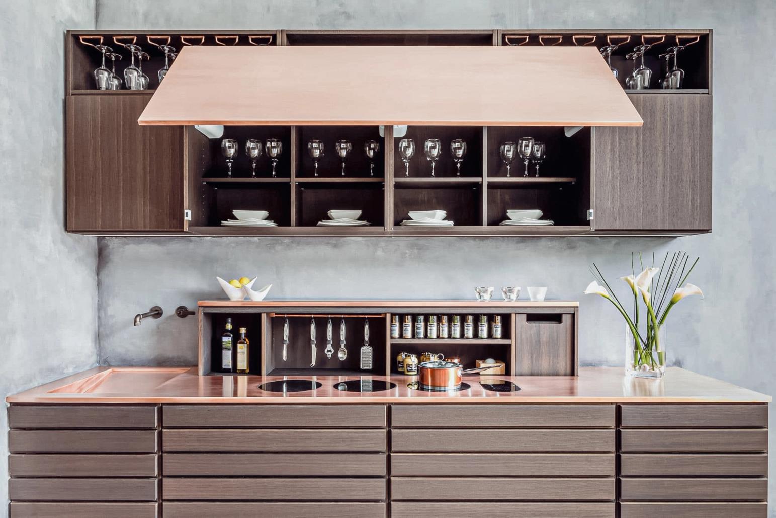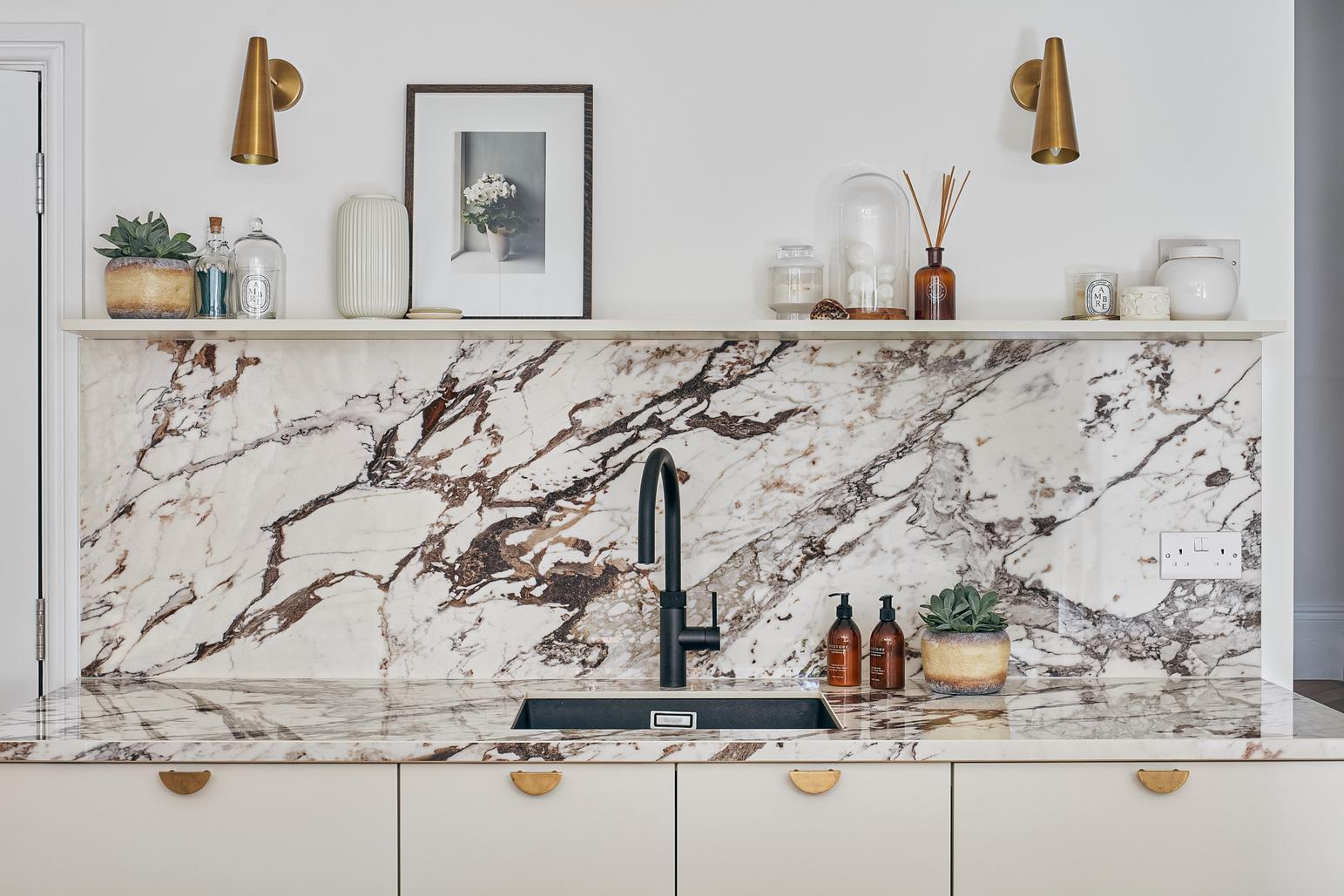 Follow the trend for warmer metals in the kitchen with a splashback that continues the theme.