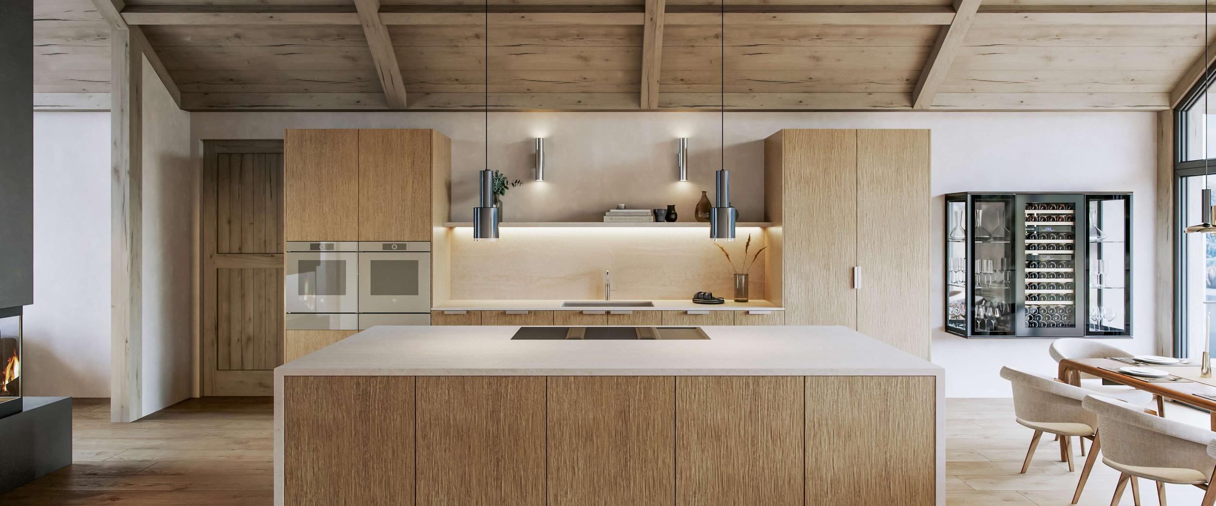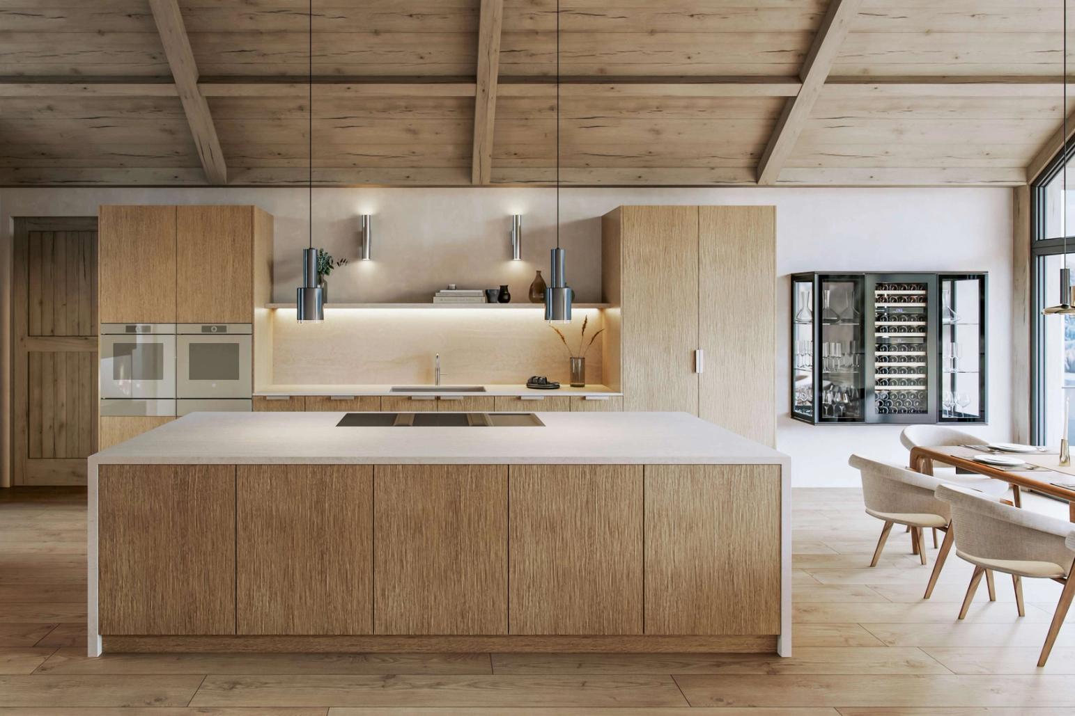 Designed to complement a variety of interior styles, Ström is seen here in a luxurious Swiss Alps ski lodge, where its warmth and organic beauty elevate the tranquil mountain setting. The cabinetry’s honey oil finish enriches the timber’s natural tone, bringing a sense of warmth and authenticity to the space, while maintaining a refined, modern edge.