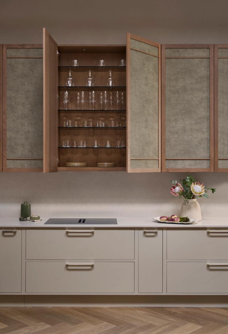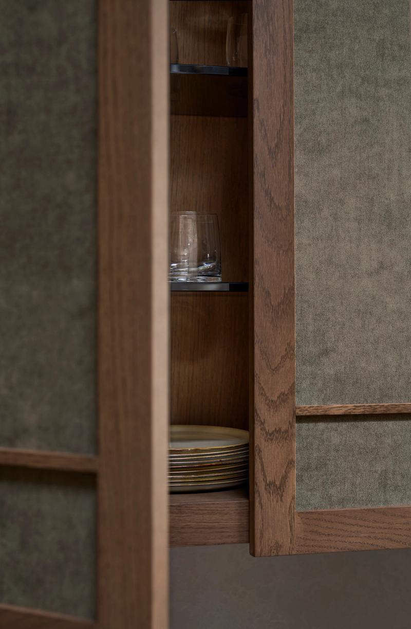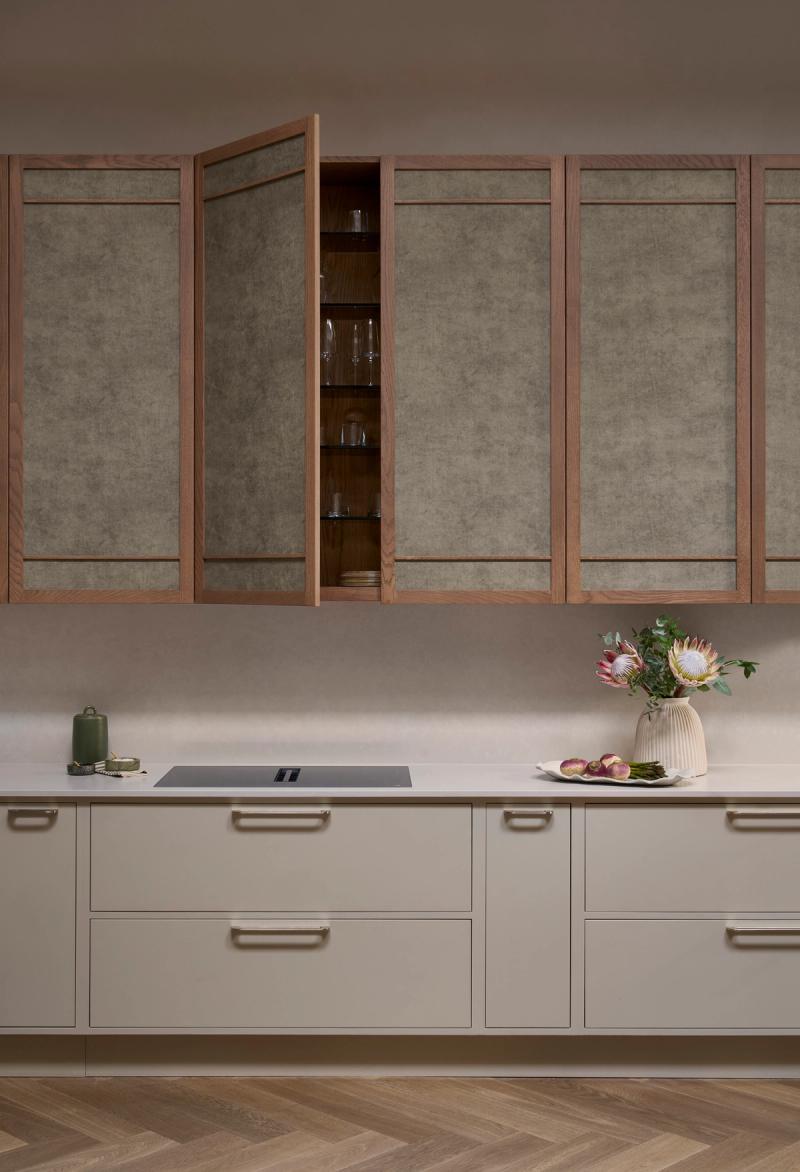 Sola Kitchens, together with Miaki, has chosen a range of different woods, textures, and materials for the new collection. The collection consists of seven frame options in different woods, lacquer and metal finishes, which can be combined with six different textures for the centre panels.