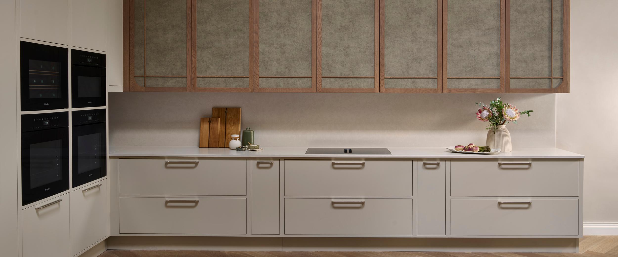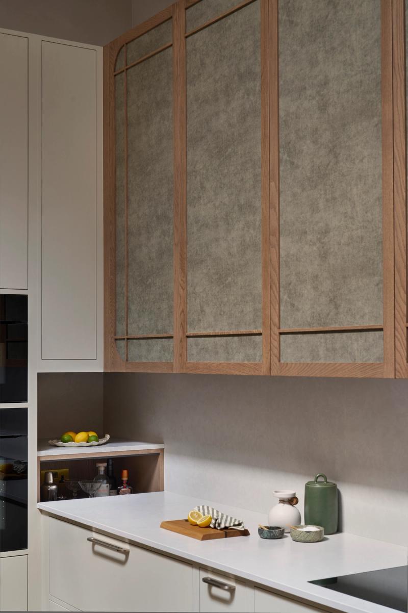Gerakas is not just a kitchen; it is a narrative, hand-crafted in Sola Kitchens’ workshops. A celebration of contrasts, where minimal lines and clean joinery are softened by curved edges, textile-inspired panels, and a palette drawn from nature.