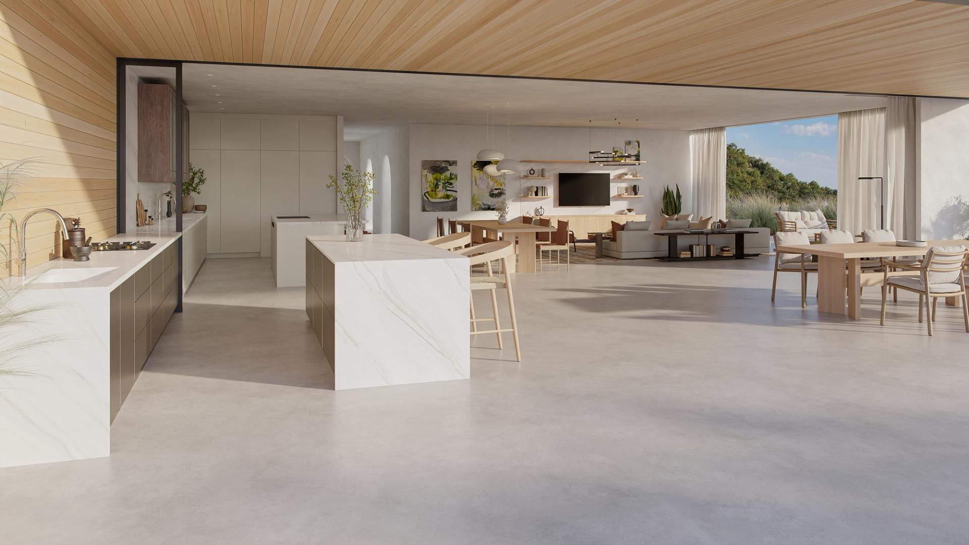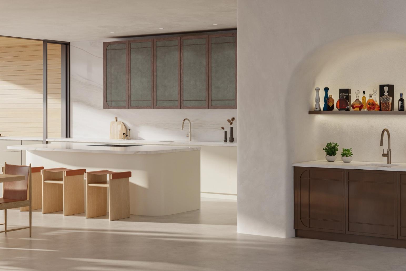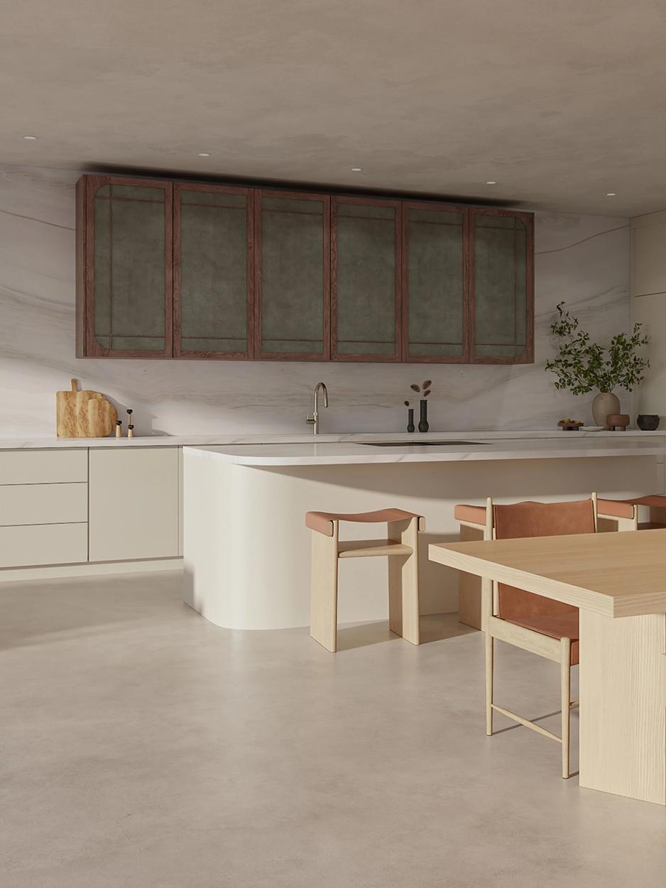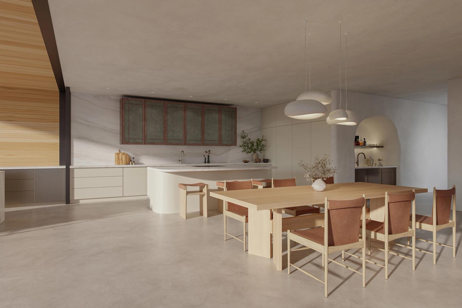 The clients envisioned a holiday home that would feel relaxed, luxurious, and grounded — a space that connected the surrounding natural beauty with clean, enduring design. Their priority was to create a light-filled kitchen that remained practical for hosting and entertaining, while evoking a soft, tactile atmosphere reflective of the Greek islands.
