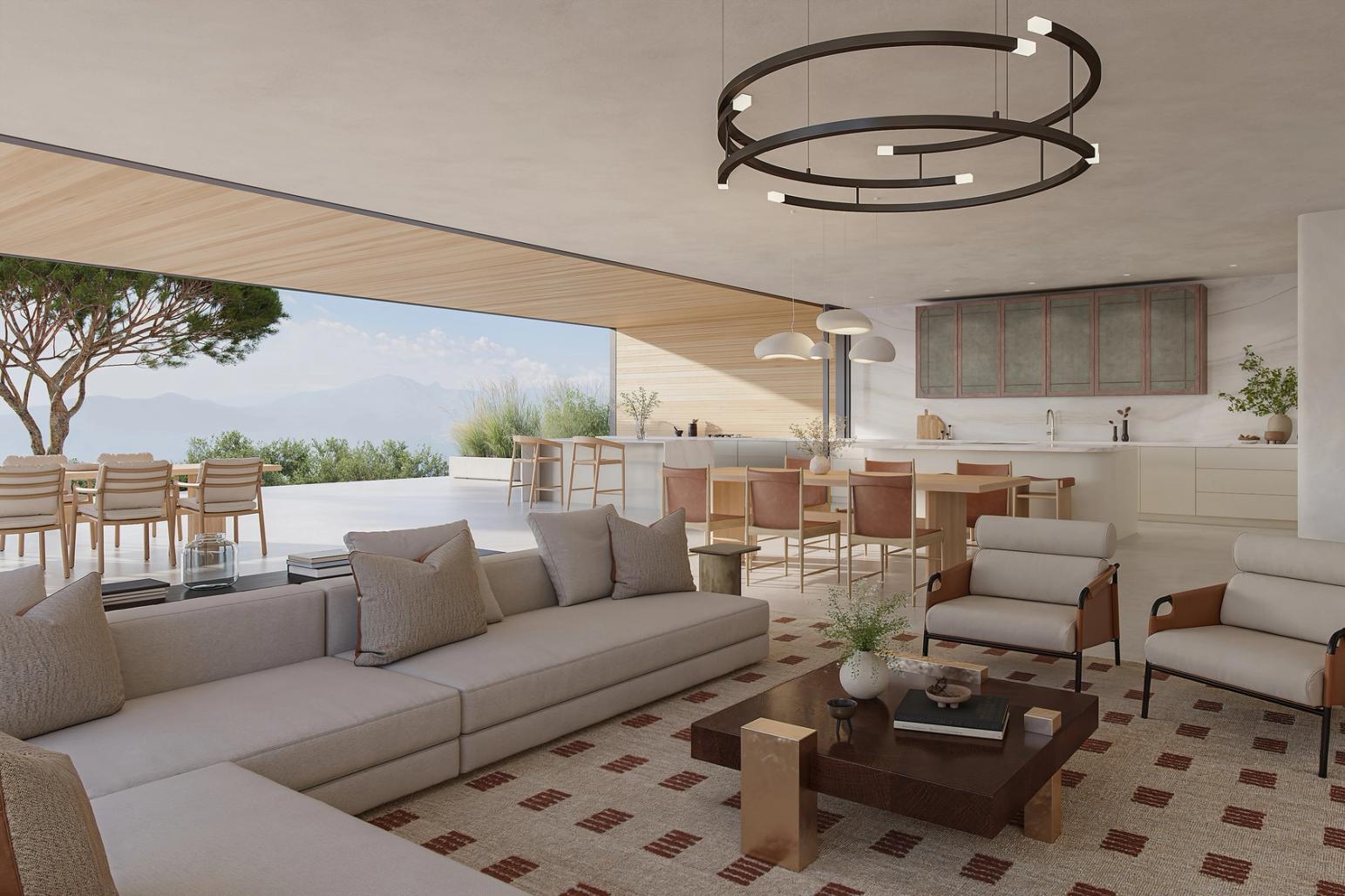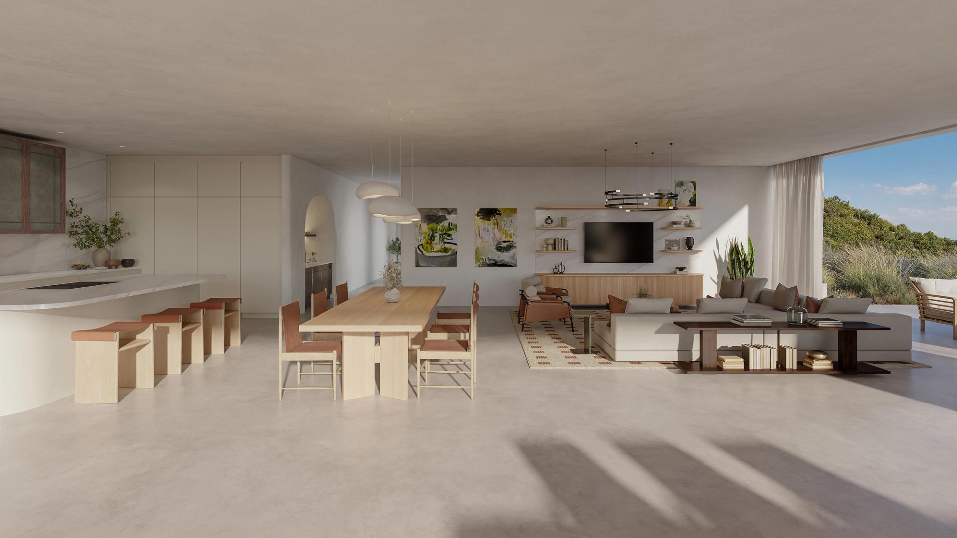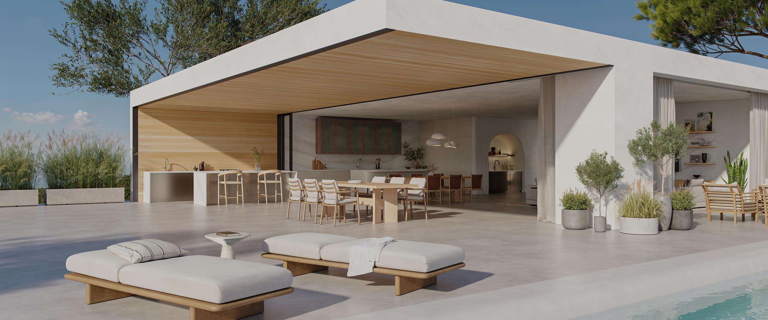 The clients envisioned a holiday home that would feel relaxed, luxurious, and grounded — a space that connected the surrounding natural beauty with clean, enduring design. Their priority was to create a light-filled kitchen that remained practical for hosting and entertaining, while evoking a soft, tactile atmosphere reflective of the Greek islands.