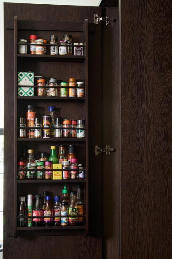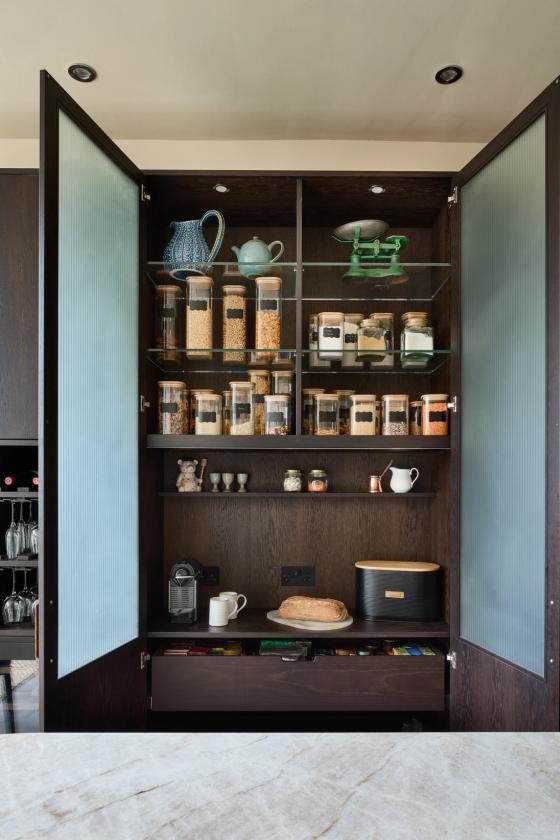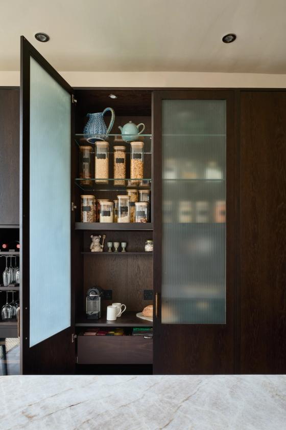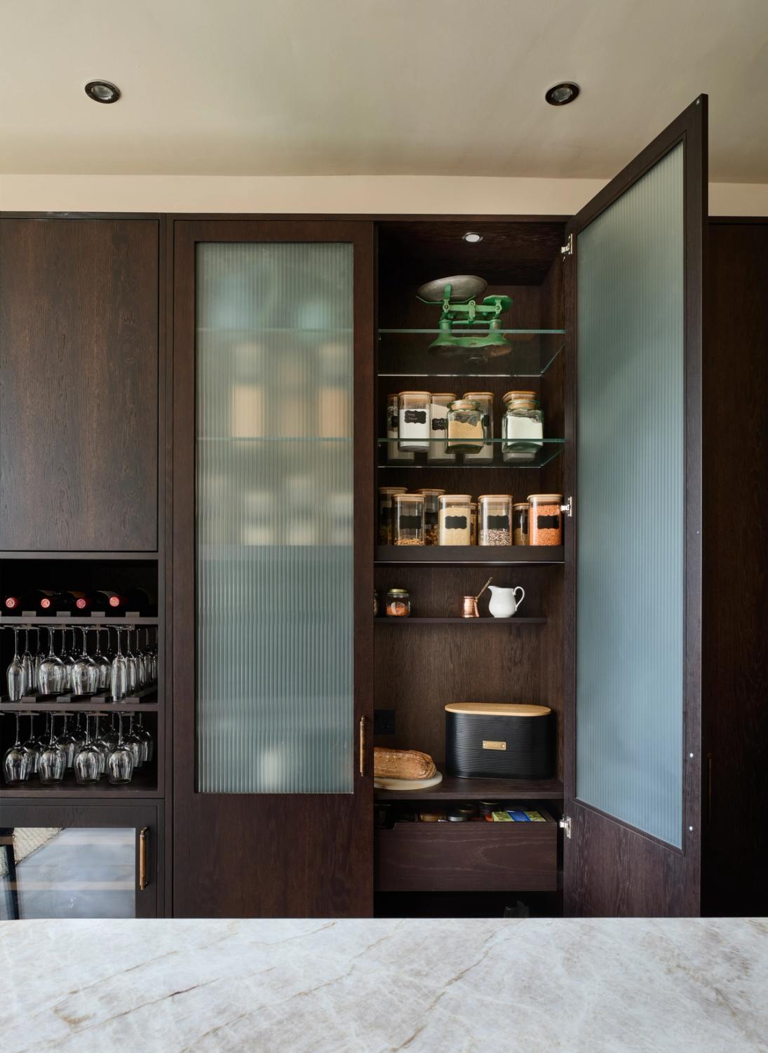 Inside story: all the internals of the cabinets have been stained a smoked oak colour so that when the doors are open, the interiors are identical to the exteriors.