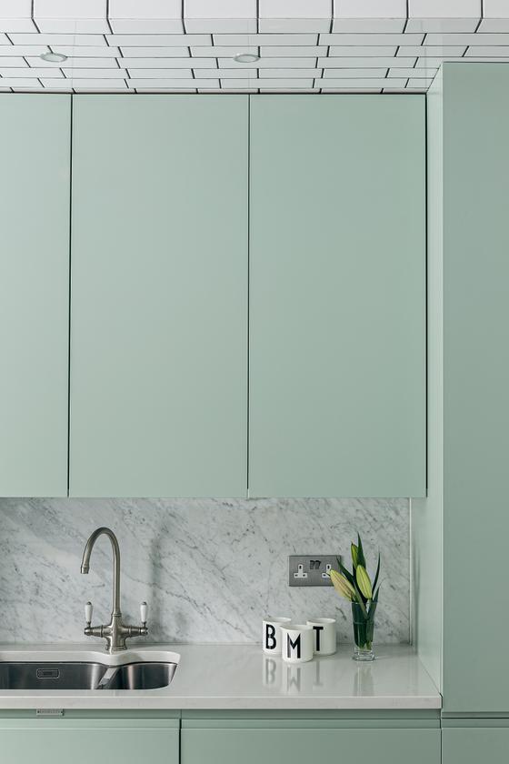 The owners of this kitchen within a new block of flats in London wanted a design that would use the compact space intelligently and complement the decorative scheme their interior designer had devised for them.