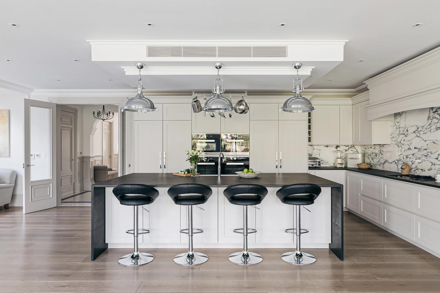 The clients wanted to add some fun and design flair to the kitchen and it was redesigned to reflect our client's Scandinavian background: it is low-key and streamlined, devoid of clutter, the perfect “hangout” kitchen when friends gather.