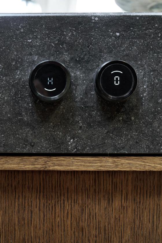 A cut above the rest: templating is an art that is taken to the extreme by the Sola Kitchens team; here, openings for the knobs of the downdraft Bora professional hob and the hob itself, and levels to fit the under-counter cabinet door pulls have all been meticulously measured before being cut.
