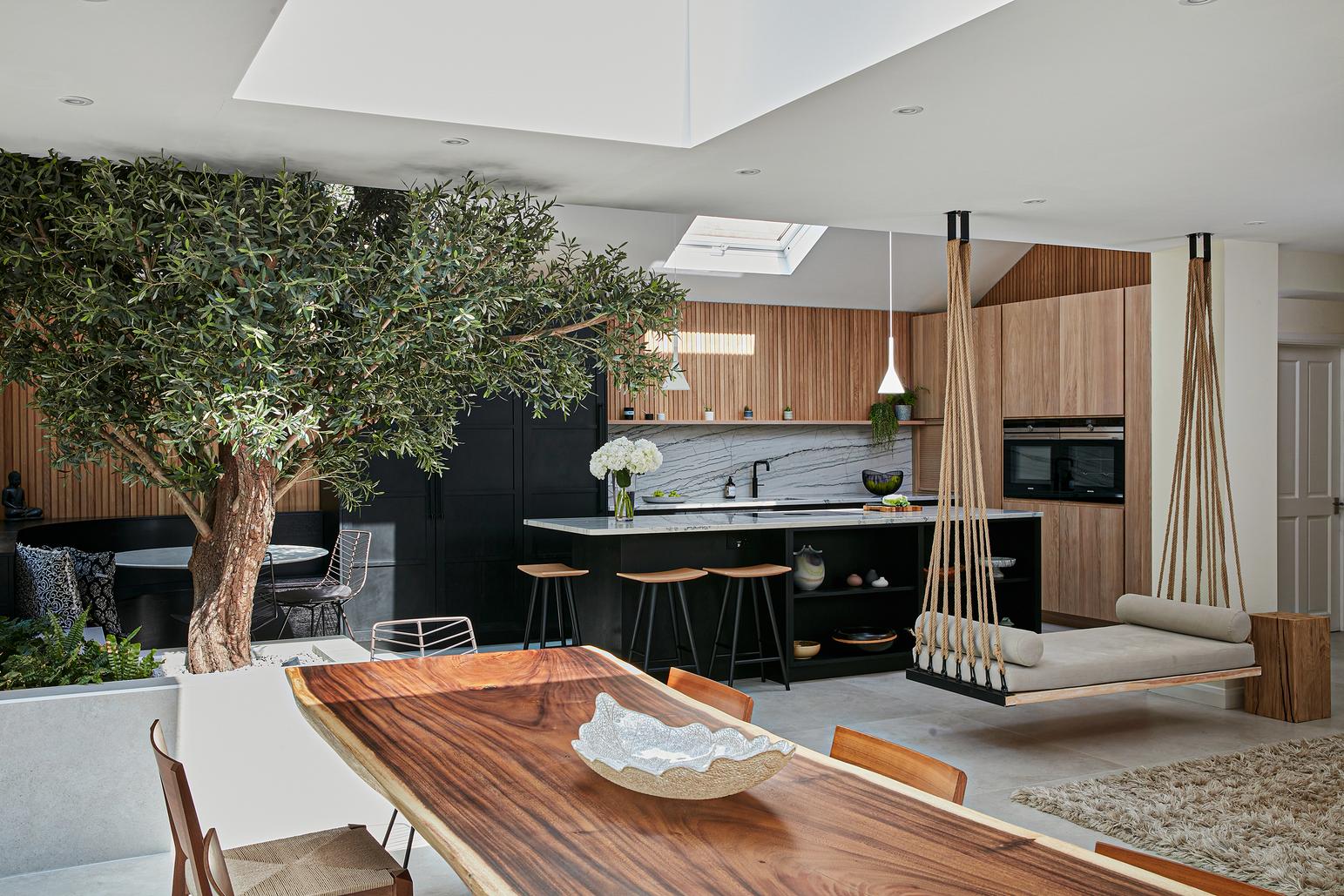 An award-winning kitchen with a family-friendly layout that celebrates the owners' Sri Lankan and Singaporean heritage and their enjoyment of living close to nature.