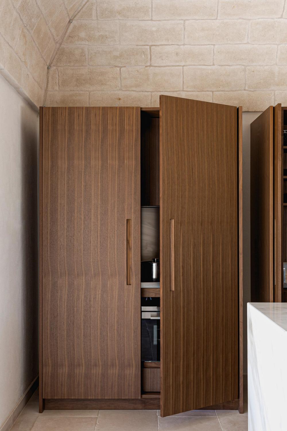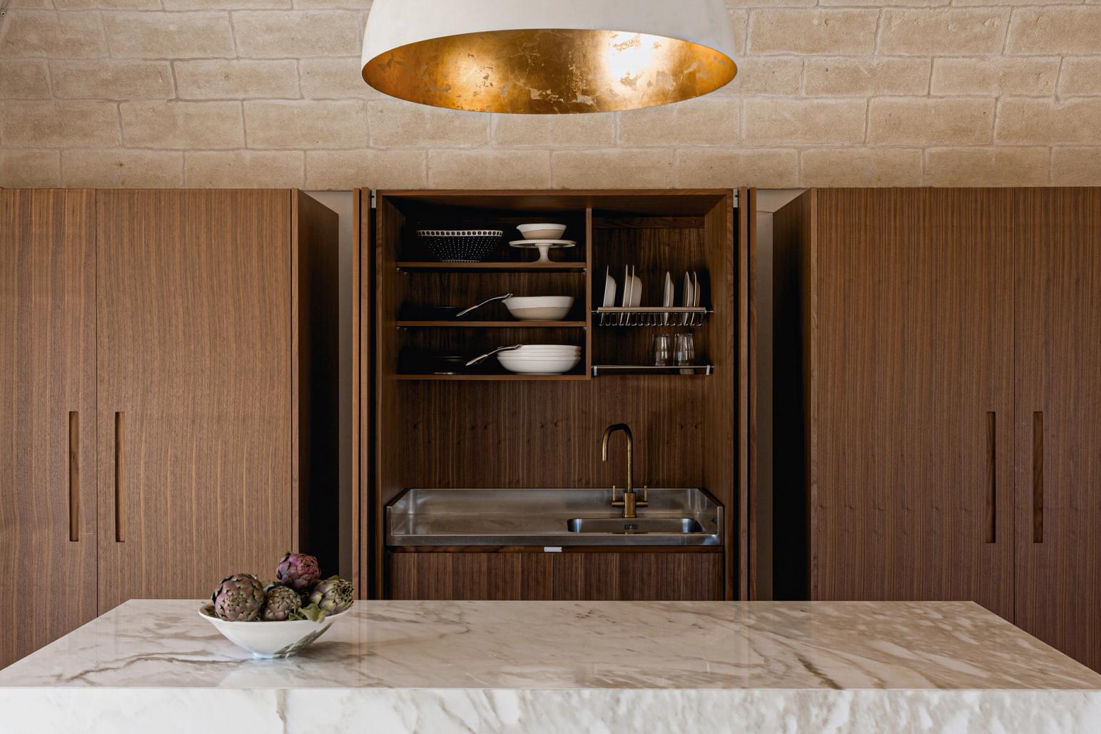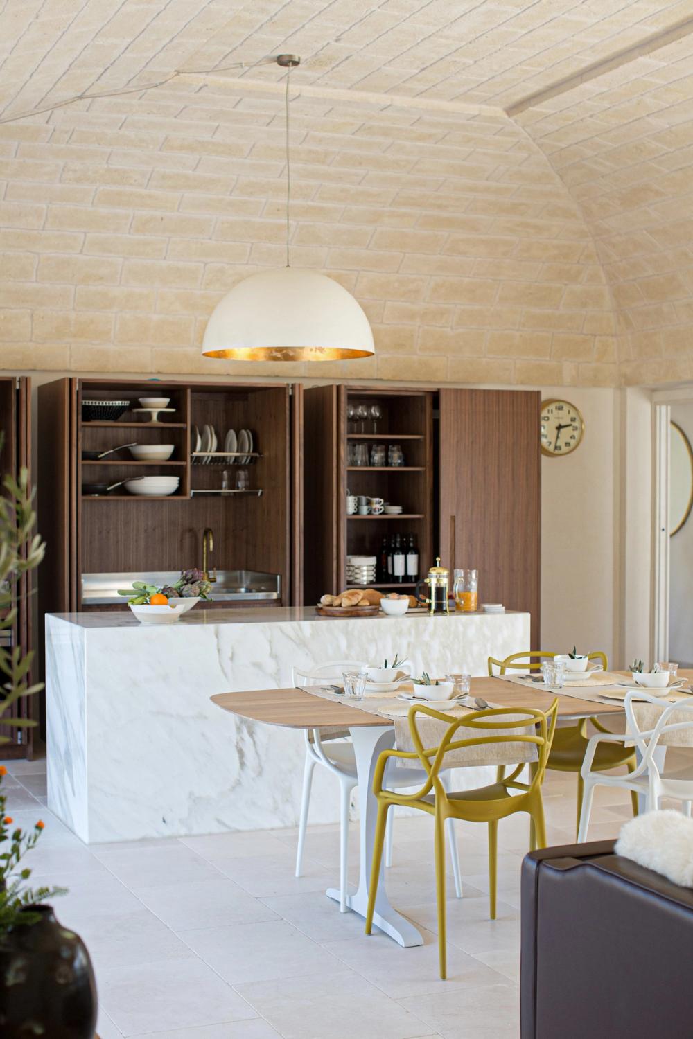 A unique approach to kitchen cabinetry was sought by the interior designer-owner of this home in Puglia, in southern Italy.
