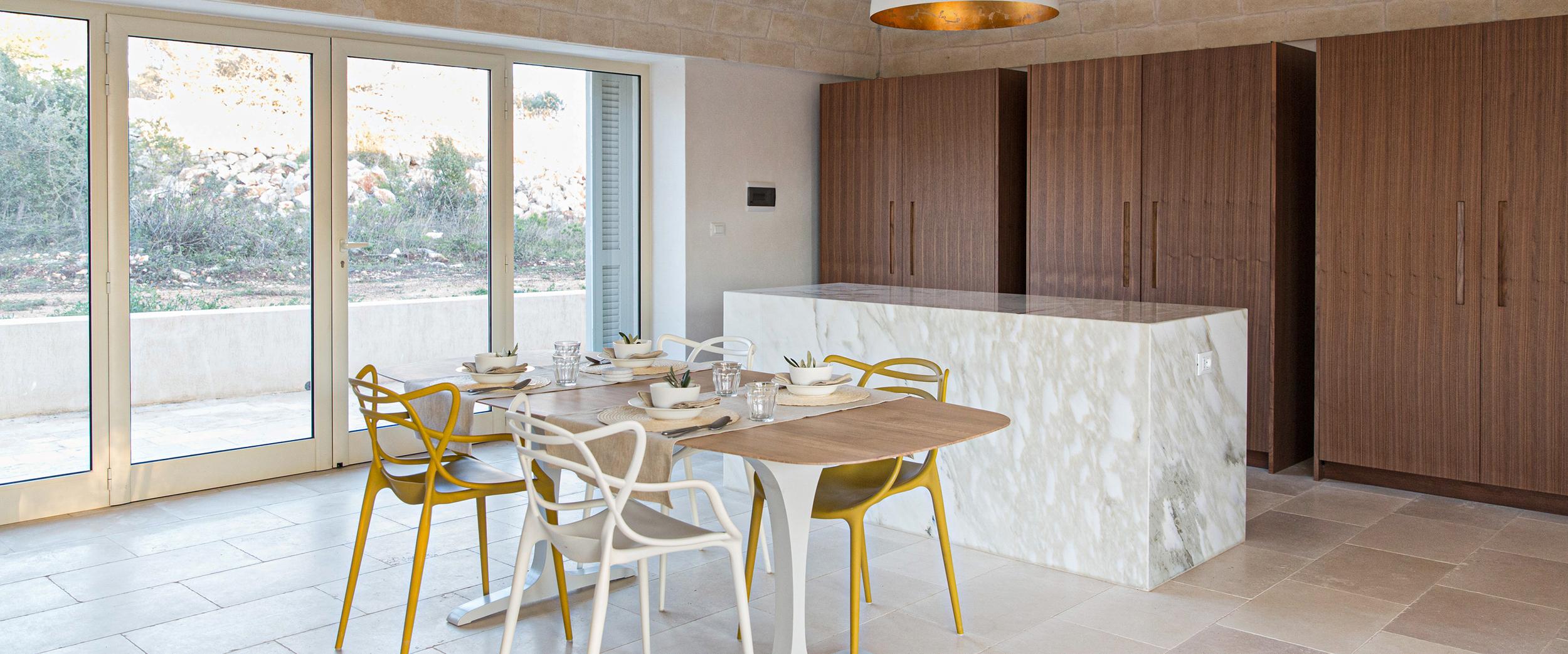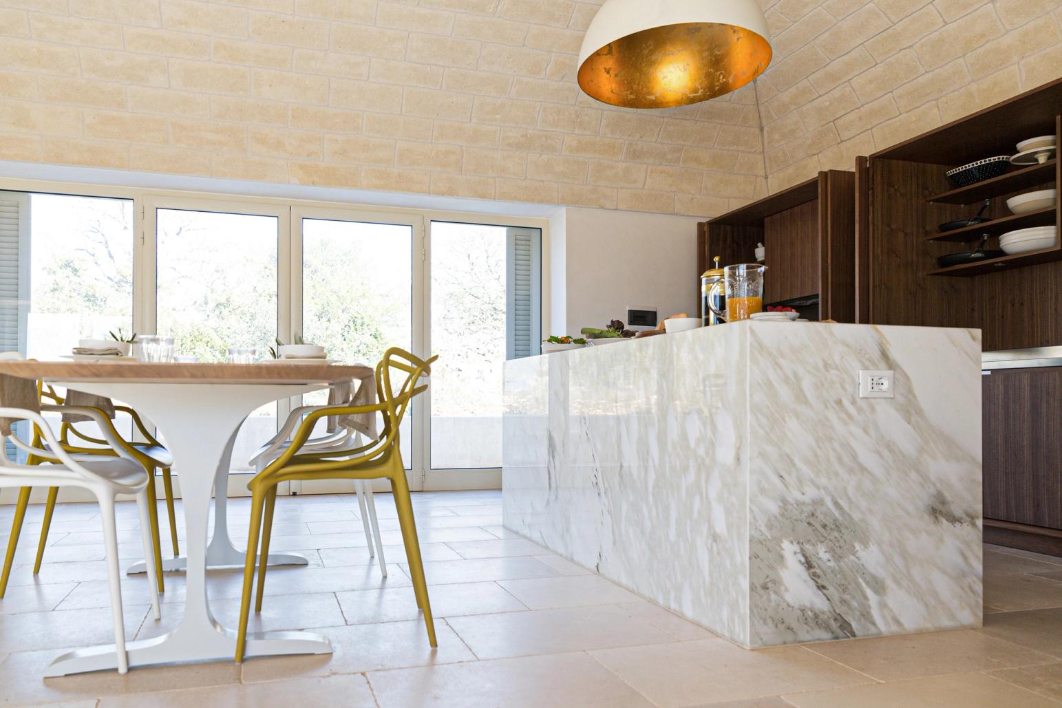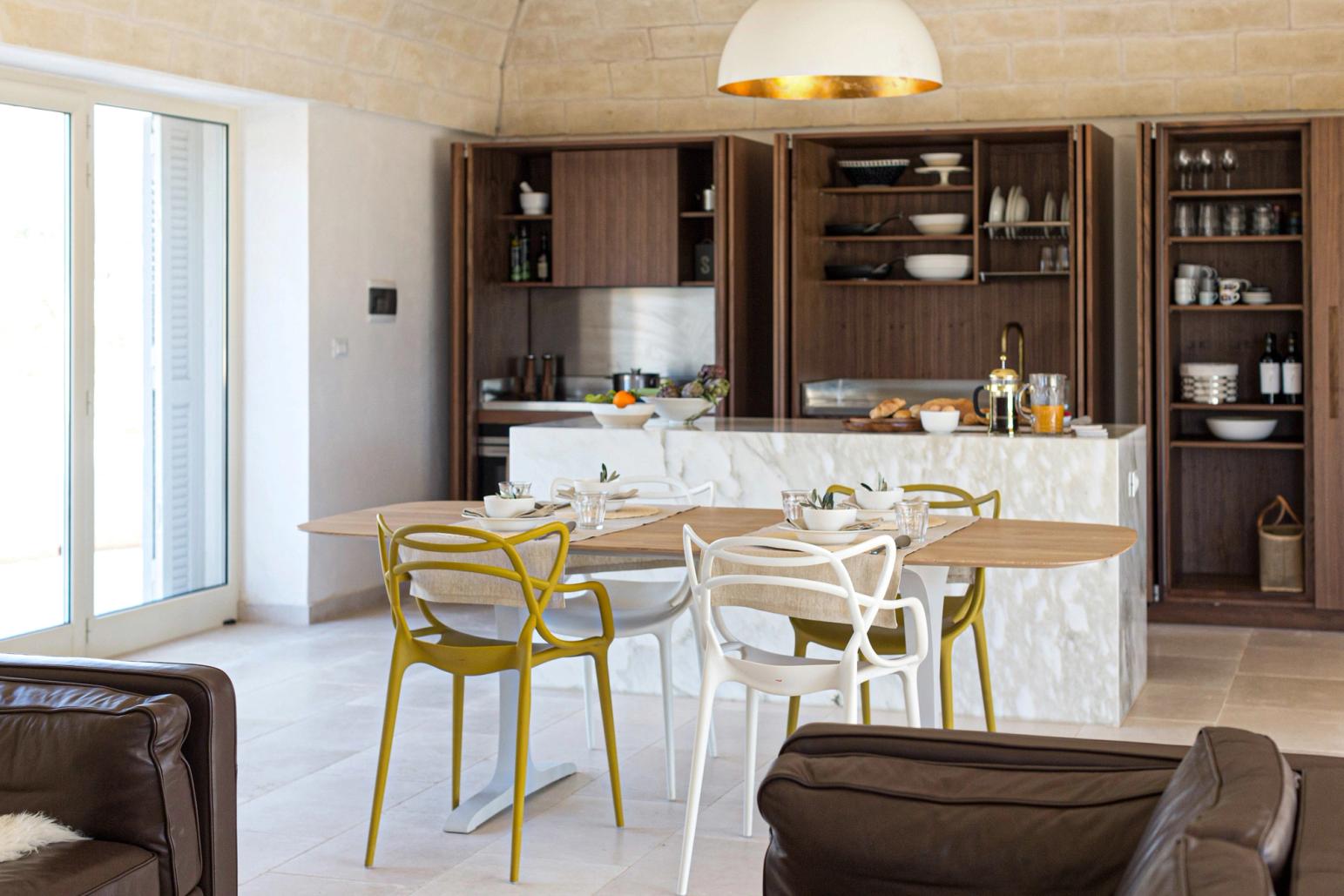 A unique approach to kitchen cabinetry was sought by the interior designer-owner of this home in Puglia, in southern Italy.